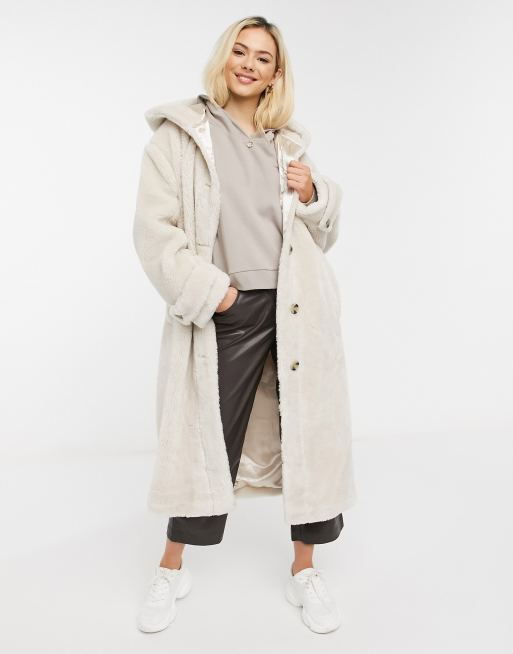 Manteau Imitation Mouton: Une face suédine, une face teddy avec des poches de chaque face.