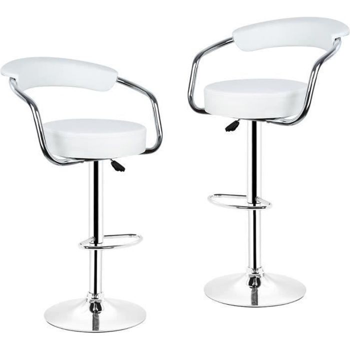 Lot de 2 tabourets de bar blanc chaise de bar chaise lounge avec dossier et accoudoir hauteur réglable de 62 0 à 82 5 cm. Elle est différente d'un tabouret de bar classique. Le siège magnifiquement courbé de cette chaise de bar est fabriquée à partir d'un contreplaqué laqué blanc. Sa hauteur d'assise de 78 cm vous assure la meilleure. Elle peut être associée à une cuisine équipée d'un comptoir, à un îlot central, ou encore à une table mange debout qui peut prendre sa place dans une maison ou un petit appartement.