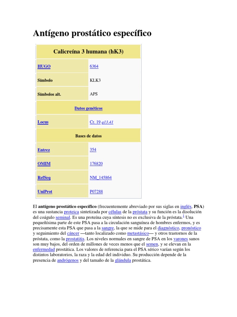 Antigeno Prostatico! No olvides citar a ccm salud (salud.ccm.net) como tu fuente de información.